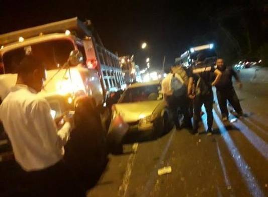 La noche de este lunes una fuerte colisión entre un auto sedán y un camión de carga, ocurrió en el sector de Loma Cová, en dirección a Panamá Centro.