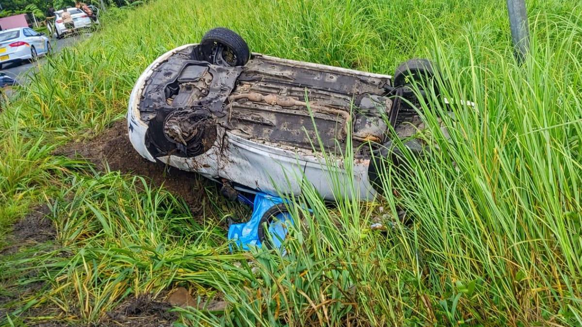 Tras desviarse de la vía, el automóvil se volcó y terminó en una hondonada a un costado de la autopista Arraiján–La Chorrera.