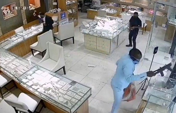 Un video de la cámara de seguridad hizo viral las imágenes de varios delincuentes en plena acción, destruyendo las vidrieras del local comercial con armas de grueso calibre, para extraer prendas aparentemente ya seleccionadas, y logrando escapar en un taxi rentado.
