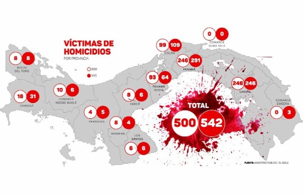 Durante el año 2020 ocurrieron 500 homicidios, mientras que en el 2021 ocurrieron 542 asesinatos del 1 de enero al 30 de diciembre, registrando un aumento de 42 hechos violentos.