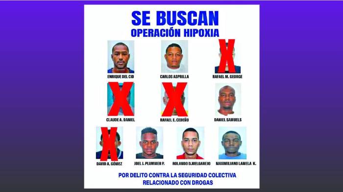 Las autoridades todavía mantienen desplegados los operativos para dar con el paradero de otras seis personas que guardan relación con la Operación Hipoxia. Se trata de: Enrique Del Cid, Carlos Asprilla, Daniel Samuels, Joel Plummer, Rolando Melgarejo y Maximiliano Lamela.