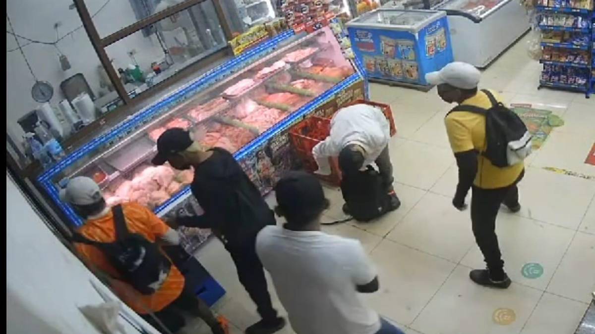 Uno de los dependientes logró cerra la puerta del local y crea momentos de tensión, pues los delincuentes no podían salir del supermercado y empiezan a gritar la puerta, la puerta, la puerta, abre la puerta, abre la puerta loco, y entre los cinco hombres intentan abrir la puerta a punta de golpes hasta que la rompen y salen por un hueco.