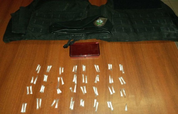 Otro de los hallazgos encontrados en la parte de afuera de la ventana del mismo cuarto un cartón de bebida que en su interior había determinada cantidad de bolsas de plástico con un polvo blanco que se presuma sea la sustancia conocida como cocaína. El ciudadano fue remitido a las autoridades competentes.