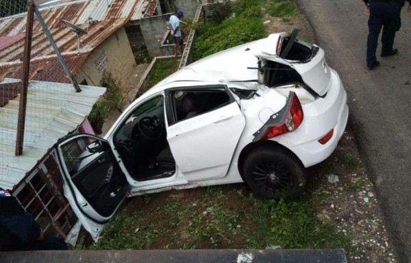 Insólito. El conductor de un vehículo sedán color blanco, sin matrícula, impactó contra la plataforma de un camión cerca de una vivienda en el Valle de Urracá.
