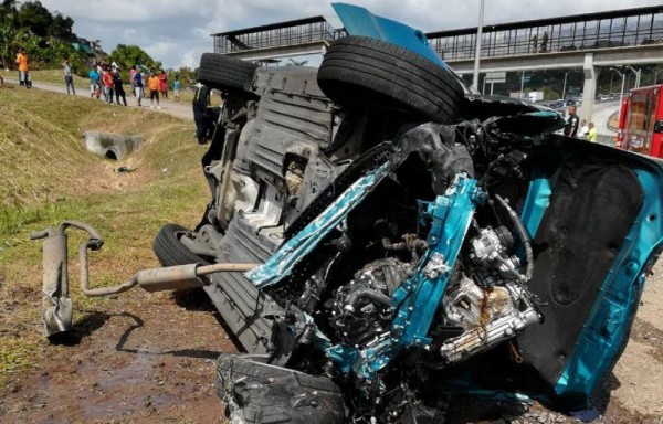 Del impacto el auto salió expedido hacia la vía nuevamente donde quedó volcado.