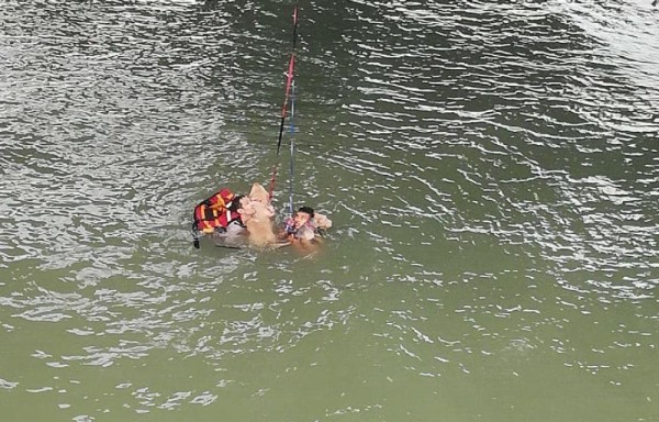 Agentes del Servicio de Protección Institucional (SPI), al ver la situación, se tiraron al agua para rescatar a los animales y a sus dueños.