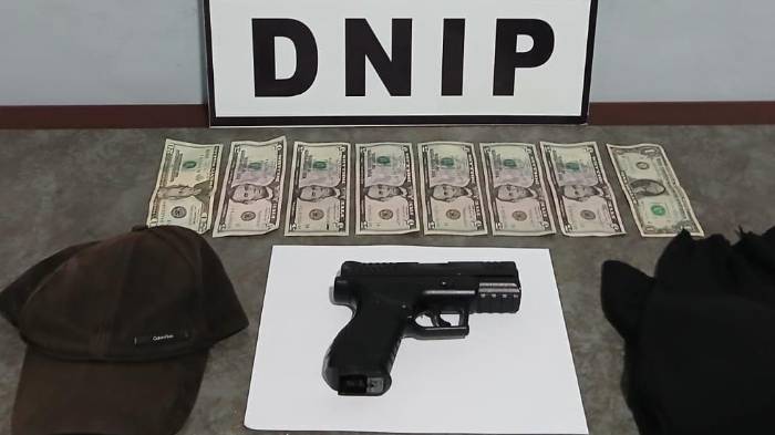 Al momento de realizar el registro de rigor, las autoridades hallaron en posesión del detenido:una réplica de arma de fuego utilizada presuntamente para someter a las víctimas así como dinero en efectivo, Cuya cuantía se presume pertenece a la caja del comercio afectado.