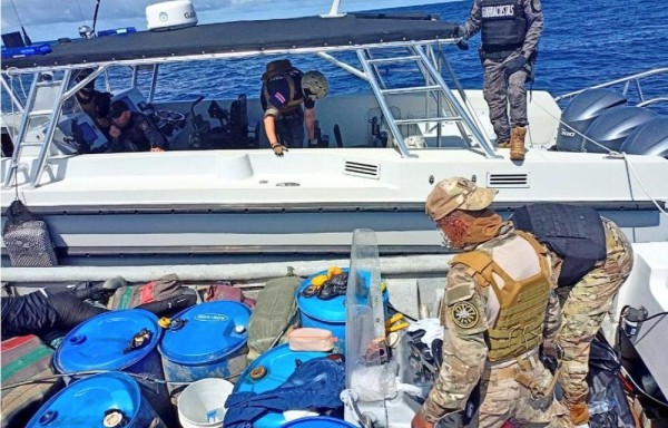 Posteriormente, al suroeste de Punta Burica, aeronavales interceptaron una lancha rápida en donde viajaban tres hombres. En la misma llevaban varios bultos con presunta droga.