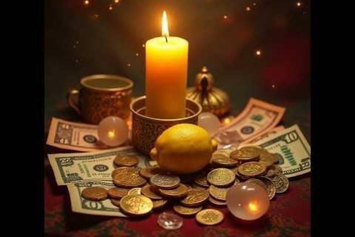 Basado en la creencia oriental, existe un ritual que busca abrir caminos a la prosperidad. El ritual consiste en preparar un pequeño altar con una vela amarilla, tres billetes de cualquier denominación, una copa de agua con sal y un sahumerio de limón.
