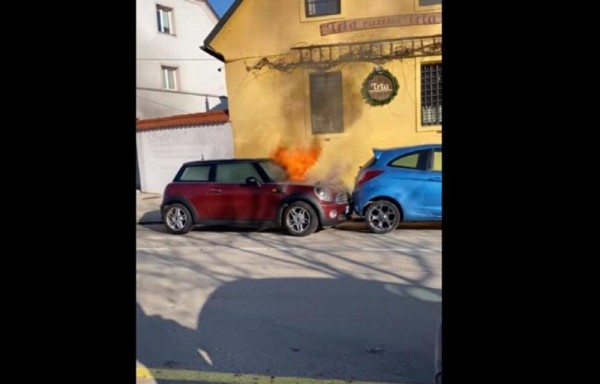 CASO INSÓLITO | El incidente tuvo lugar en la capital eslovena, Liubliana. En las imágenes se pueden observar llamas que salen del capó de un MINI Cooper que se encuentra estacionado en una vía pública. Repentinamente se enciende su motor y el coche empieza a moverse hacia delante estrellándose con otro vehículo que se encuentra en la misma línea de aparcamiento y este impacta a su vez con otros. El auto tras algunos minutos se escuchan unos estallidos en el motor.