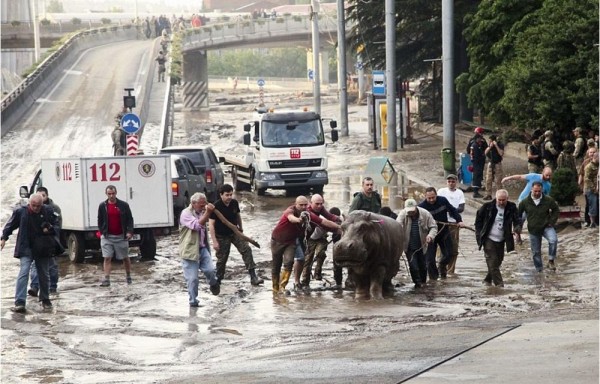 Locura. Luego de las terribles inundaciones que afectaron las calles de Tiflis, algunos leones, lobos, fieras, tigres, y un hipopótamo escaparon del zoológico y vagaron por el centro de Georgia es un país situado en el límite entre Asia y Europa localizado en la costa del mar Negro, al sur del Cáucaso.