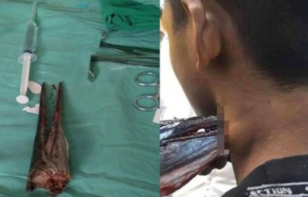 Un pez espada atravesó su cuello y el chico sobrevivió