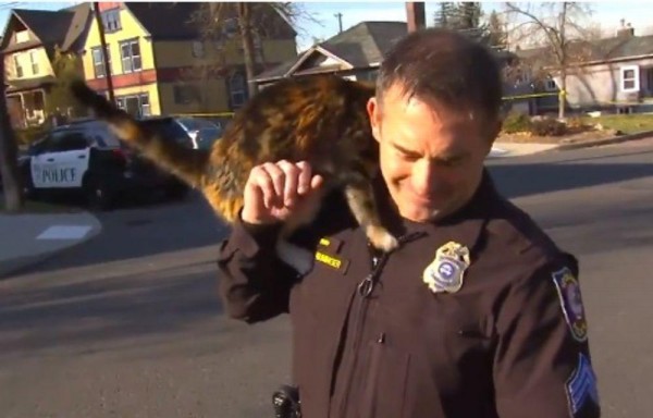 Jocoso Un gato interrumpió a un policía de Washington durante una entrevista en directo, trepándosele y dándole con la cola.