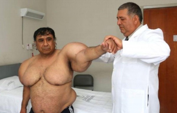 Del codo para abajo, sus brazos podrían pasar como los de cualquier hombre sano de 56 años. Son sus bíceps, con un contorno de 62 y 72 centímetros cada uno, los que hacen que se posen sobre él todas las miradas.
