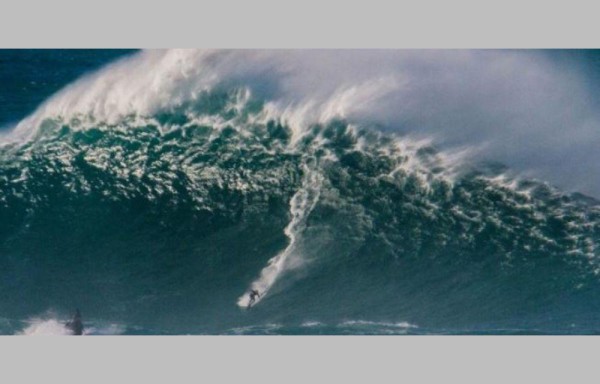 Un récord mundial podría tener el surfista portugués Hugo Vau, al coronar la ola ‘Big Mama' de 35 metros de altura, el equivalente del tamaño de un edificio de 14 pisos, en Playa del Norte, en Portugal.