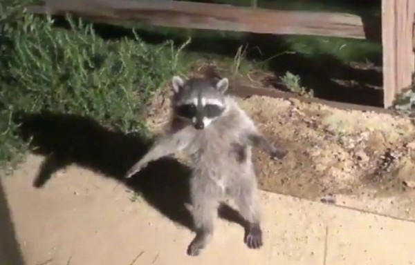 Un insólito video en redes sociales muestra como dos mapaches que fueron descubiertos por una persona en su jardín...