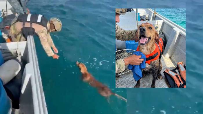 El video del rescate fue compartido en la redes del Senan, donde se explicó que el perro fue avistado durante un patrullaje marítimo en la zona, y posteriormente llevado a un lugar seguro.
