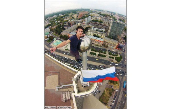El joven ruso Kirill Oreshkin parece no sufrir de vértigo.