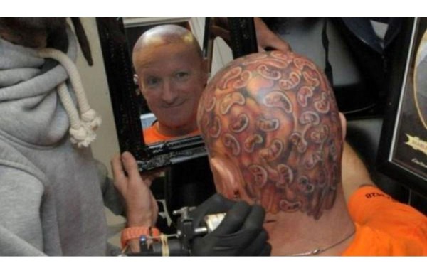 Un excéntrico galés celebró su cumpleaños número 60 tatuándose 60 frijoles en su calva cabeza, y por más extraño que parezca, lo hizo por una buena causa.
