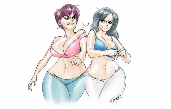 Madre e hija peleando un pollo