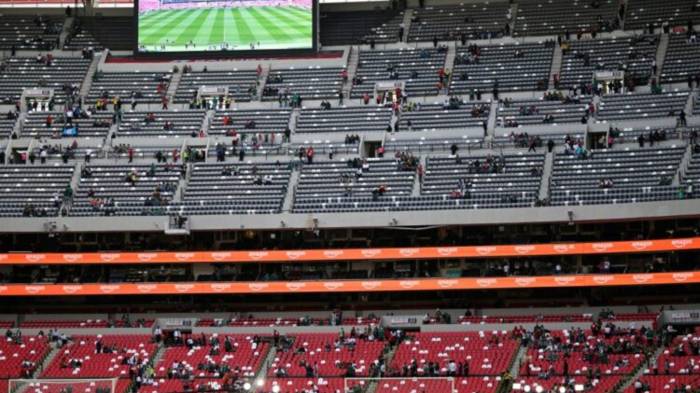 “En la zona de palcos del Estadio Ciudad de México (Azteca), un aficionado en estado de ebriedad intentó bajar del segundo al primer nivel brincando por la parte externa, lo que provocó que cayera hasta la planta baja, por lo que fue atendido por médico personal, pero desafortunadamente perdió la vida”, informó la Secretaría de Seguridad Civil en un comunicado.