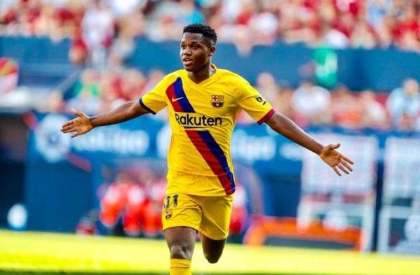 El joven hispano-guineano Ansu Fati se convirtió hoy sábado en Pamplona en la barcelonista más joven (16 años y 304 días) en marcar con el Barcelona en LaLiga, superando a Bojan Krkic y Lionel Messi.