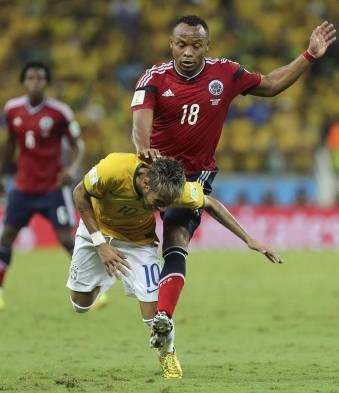 Neymar sufrió un rodillazo de su rival en la espalda en el minuto 86 del choque y tuvo que retirarse en camilla del encuentro. Los exámenes médicos a los que fue sometido dictaminaron fractura de la tercera vértebra lumbar por la que no podrá disputar el resto del Mundial de Brasil.