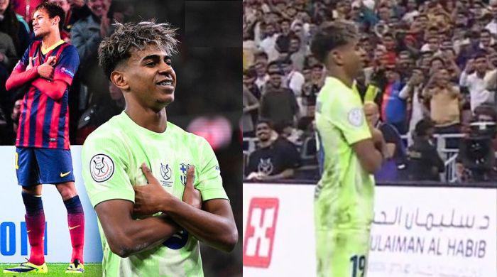 Lamine Yamal anotó un gol de gran factura, y decidió celebrarlo a lo Neymar, como homenaje al jugador brasileño, imitando su postura erguida y los brazos cruzados.