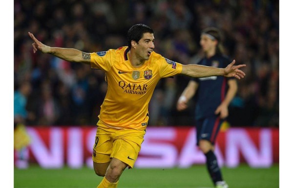 El Barcelona ganó ayer 2-1 al Atlético de Madrid con un doblete del uruguayo Luis Suárez, en el partido de ida de los cuartos de final de la Liga de Campeones, poniendo un pie en las semifinales del torneo continental.