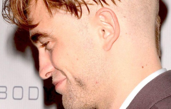 Robert Pattinson rapó su cabeza en la parte inferior y dejó el cabello largo en la parte superior, así como una línea de cabello en la parte posterior de su nuca.