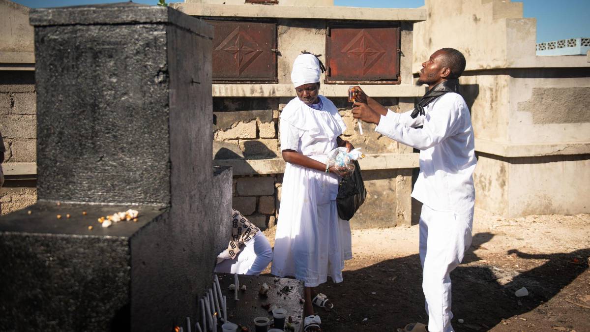 En la festividad de los Muertos, que en Haití se conmemora el 1 y el 2 de noviembre, cada cual va al cementerio por una razón concreta: algunas mujeres a pedir hijos o cónyuge, algunos hombres en busca de protección y otros acuden para dar las gracias a los espíritus porque sus peticiones se han cumplido.