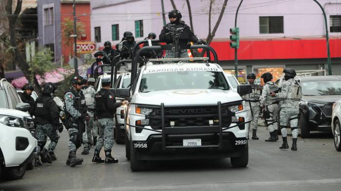 La alerta se extendió a la capital mexicana con el traslado al final de la tarde del cuerpo de El Mencho desde el hangar de la Fiscalía General de la República (FGR), escoltado por fuerzas federales hacia los servicios forenses de la dependencia en Ciudad de México, donde se realizarán las pruebas de identificación y peritajes oficiales.