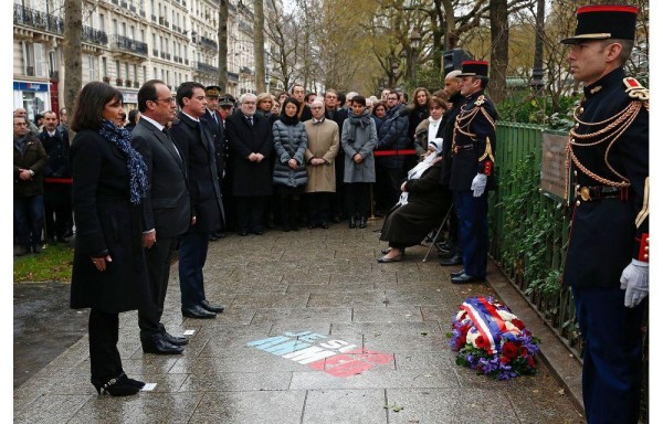 PARÍS CONMEMORA LOS ATENTADOS DE ENERO DE 2015 EN PARÍS | El presidente Francés, François Hollande (i) inauguró ayer tres placas en recuerdo de las víctimas de los atentados de enero de 2015 en París, la primera de una serie de ceremonias para conmemorar los ataques yihadistas que dejaron 17 muertos. El jefe de Estado desveló primero una placa ‘en memoria de las víctimas del atentado terrorista contra la libertad de expresión' en la antigua sede de la revista satírica Charlie Hebdo.