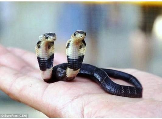 El reptil de 20 centímetros de largo tiene dos cerebros, pero sólo un sistema digestivo. Nació en una granja de ofidios y fue trasladada pronto al zoo para un mejor cuidado. La cobra pesa ahora 50 gramos, 15 gramos menos que una normal con la misma edad.