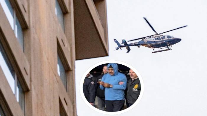 El helicóptero donde viajaba el presidente de Venezuela, Nicolás Maduro, y su mujer, Cilia Flores, aterrizó en un helipuerto cerca del tribunal donde será juzgado por narcotráfico.
