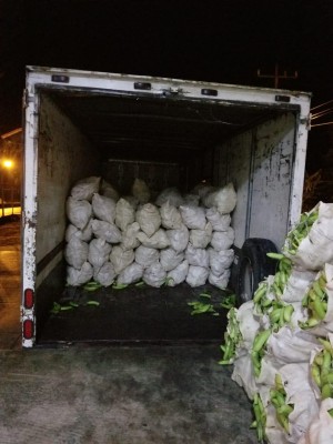 En tanto en el Puesto de Control de Guabalá, se realizó la retención de 75 sacos de guineo ya que al verificar las cantidades que estaba descrita en la guía de Aduanas se pudo comprobar que había más sacos de los descritos, motivo por el cual fue retenido para investigación.