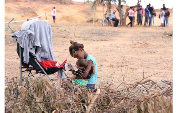 En medio de maleza, y montes que han sido quemados y unos cuantos árboles, juegan un grupo de niños que pertenecen a las familias que han invadido terrenos en la comunidad de Paso Blanco en el corregimiento de Pacora.