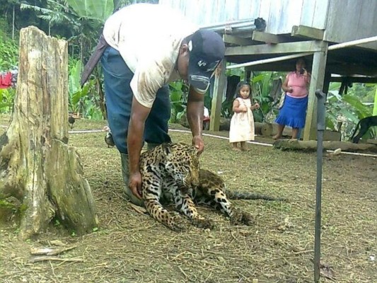Francisco Castillo, morador, dijo que ante el acecho, tres moradores de la comunidad se armaron y le siguieron el paso al peligroso animal, ellos se internaron unos dos kilómetros en la selva, y se toparon con una linda espécimen hembra de jaguar de unas 250 libras.