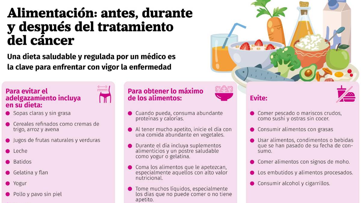 De acuerdo con Ferguson de Rodríguez, una persona que está tratando su enfermedad, ya sea con quimioterapia, radioterapia, terapias dirigidas, inmunoterapia, entre otras, debe alimentarse bien.