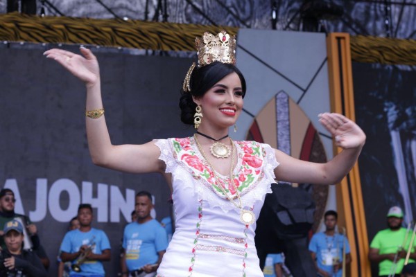 El ambiente a carnaval llegó al máximo cuando se presentó en tarima la Murga Oficial del Carnaval junto a la reina Anubis Osorio y sus princesas Cristal Fábrega y María Syres