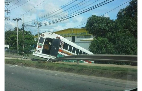 Un bus "diablo rojo" se accidentó en Vía Tocumen y por queda metido en una empresa de fábrica de pintura.
