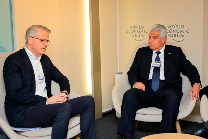 Suiza. El presidente de la República, José Raúl Mulino, sostuvo una reunión bilateral con el CEO de A.P. Moller-Maersk, Vincent Clerc, en la que discutieron estrategias que permitan a Maersk seguir apoyando los objetivos de Panamá en el fortalecimiento de la competitividad comercial y la modernización de la infraestructura portuaria y logística. Durante el Foro Económico Mundial en Davos exploraron oportunidades para avanzar en operaciones portuarias sostenibles, aprovechar la posición estratégica de Panamá para mejorar la conectividad global y ofrecer soluciones innovadoras para la cadena de suministro que estén alineadas con las prioridades de desarrollo de Panamá.