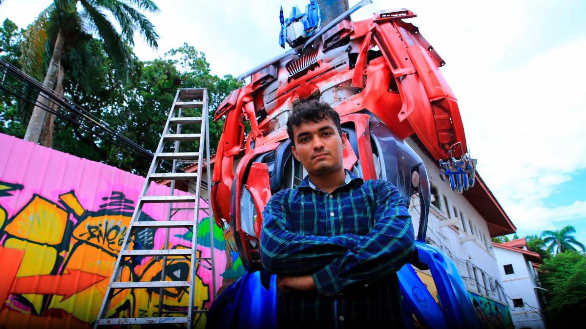 Además, obras realizadas con piezas de automóviles como llantas y partes de televisores. El escultor Romel Bravo, oriundo de Capira, fue el creador del Optimus Prime.