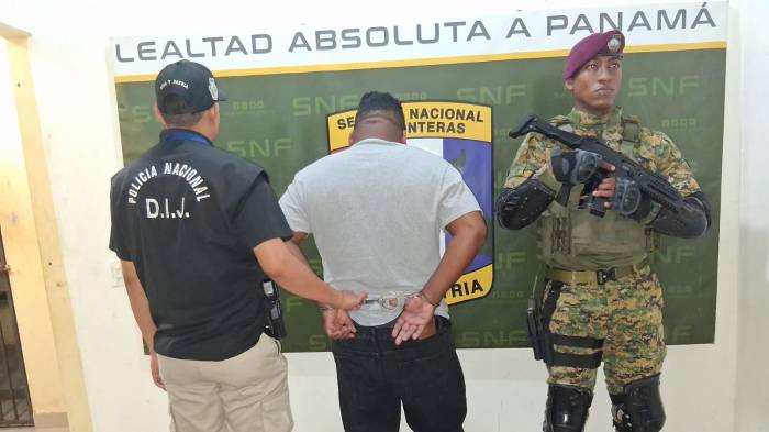 Un ciudadano requerido por delitos financieros y blanqueo de capitales fue aprehendido durante un allanamiento realizado en el sector de Paso Canoas, como parte de la Operación Fraude Total 2.0, desarrollada de manera conjunta por la Policía Nacional y el Ministerio Público, con el apoyo del Servicio Nacional de Fronteras (Senafront).