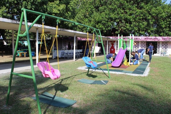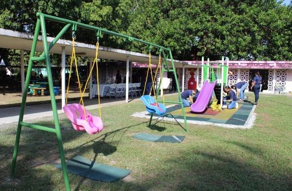 Guardando las medidas de seguridad correspondiente, se colocaron columpios, surra surra, trapecios, sube y baja, entre otros, para que los infantes pasen un momento a meno con sus madres y se mantengan el vínculo familiar.