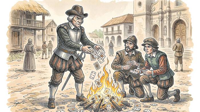 Cabe aclarar que las leyes exigían la eliminación de los juegos de suerte y azar, incluso mediante las Instrucciones de Pedrarias, aplicadas previamente en Santa María del Darién (1510). Las disputas entre funcionarios y cronistas se hicieron evidentes en la ejecución de estas disposiciones. En su voluminosa obra, el cronista Gonzalo Fernández de Oviedo adopta una postura moralizadora al intentar erradicar dichos juegos. Así lo expresa con enérgicas palabras: “... quité los juegos e hice quemar públicamente en la plaza todos los naipes que había en el pueblo” (Oviedo, Historia General de las Indias y Tierra Firme del Mar Océano, cap. XIV, p. 71).