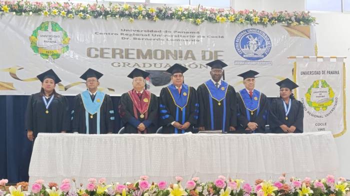 Durante la primera ceremonia, presidida por el vicerrector administrativo, Arnold Muñoz, se exhortó a los graduandos a seguir superándose y a llevar con orgullo el nombre de la Universidad de Panamá.