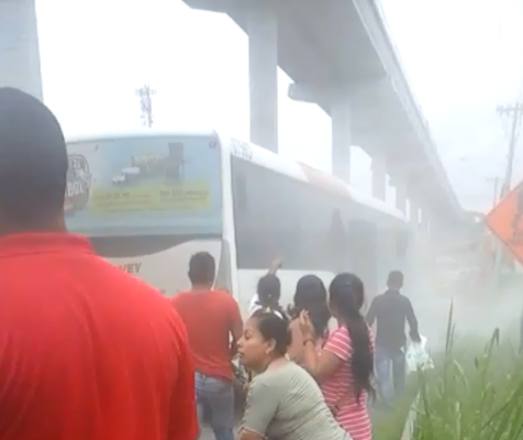 El hecho se dio en Panamá Este a la altura del corregimiento de Las Mañanitas. En el video se puede ver personas desesperadas por salir del colectivo, gritando y saltando por las ventanas que fueron quebradas con piedras por otros usuarios, también se puede ver humo saliendo del bús.