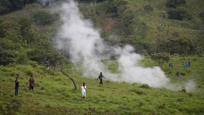 El enfrentamiento entre los manifestantes y unidades de control de multitudes de la Policía Nacional que derivó en estos arrestos se produjo en el poblado de Ojo de Agua en la provincia central de Veraguas, a la altura de la vía Interamericana que conecta a Panamá con Centroamérica, que había sido bloqueada por los participantes en la protesta.