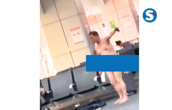 Al parecer, el pasajero se había tomado unos tragos de más. Y decidió que ese era un buen lugar para desvestirse. En el video también se ve cuando el hombre es abordado por agentes de seguridad que le piden que se coloque la ropa.